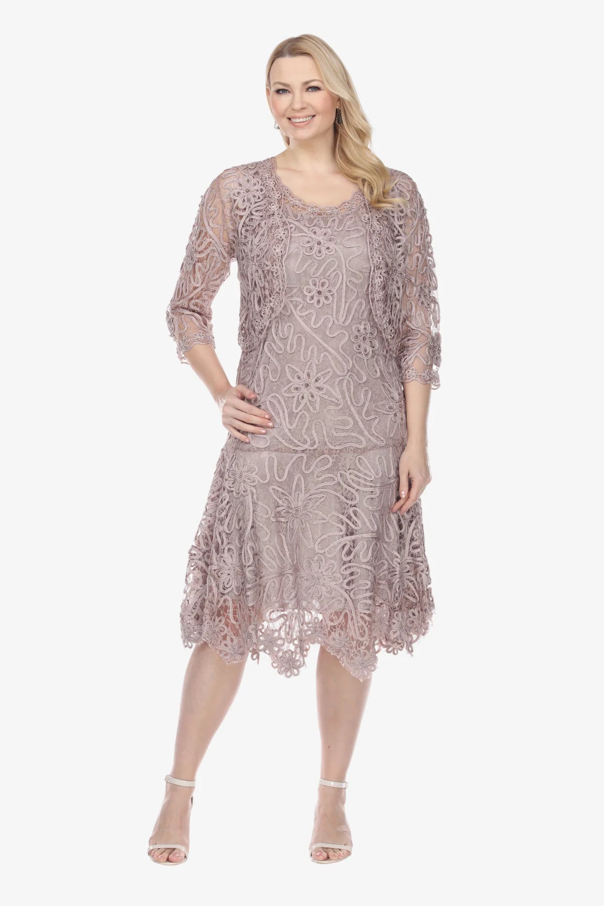 • Coordinating Jacket: The short bolero jacket adds a chic touch, providing coverage while maintaining a feminine, refined look.