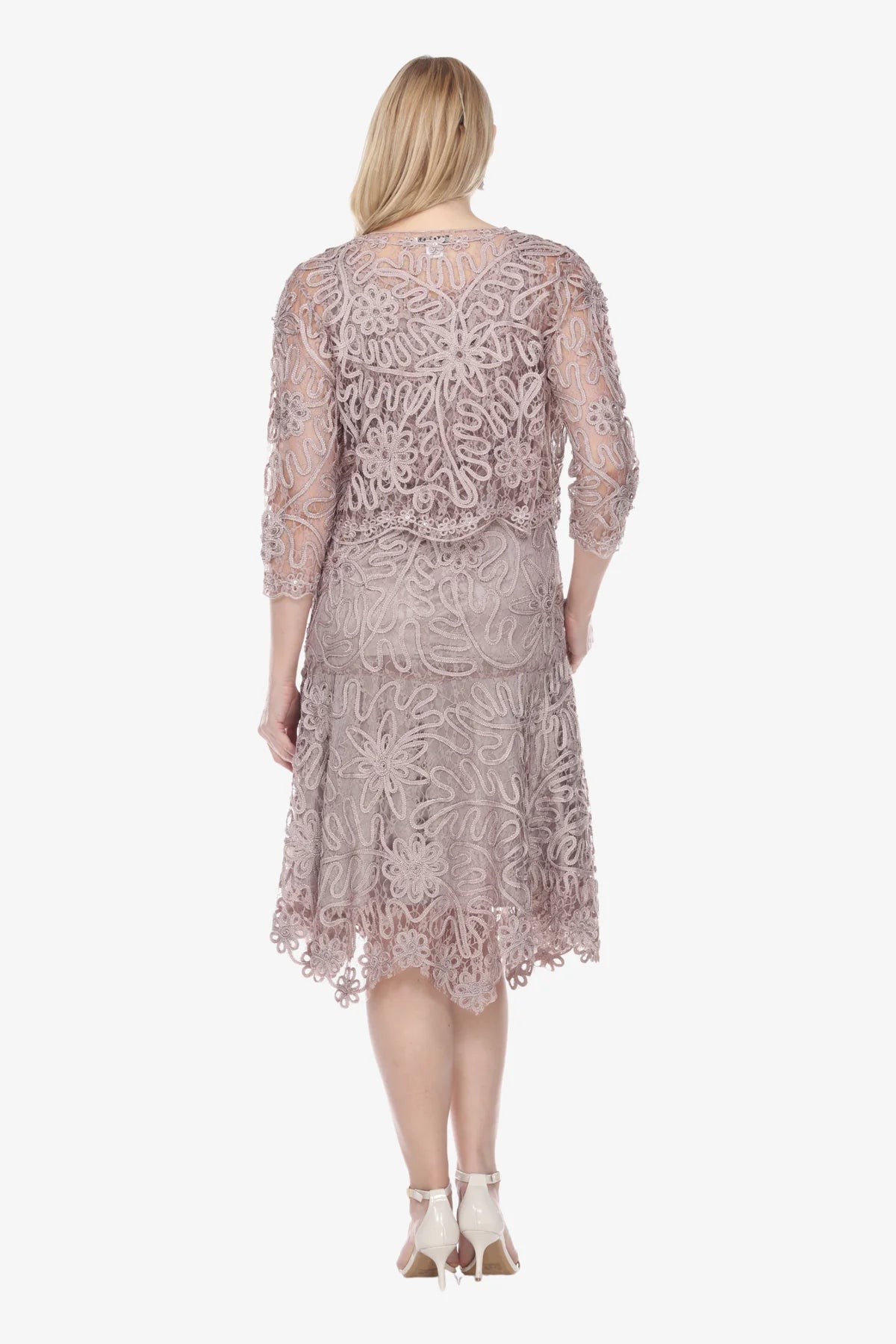 • Coordinating Jacket: The short bolero jacket adds a chic touch, providing coverage while maintaining a feminine, refined look.