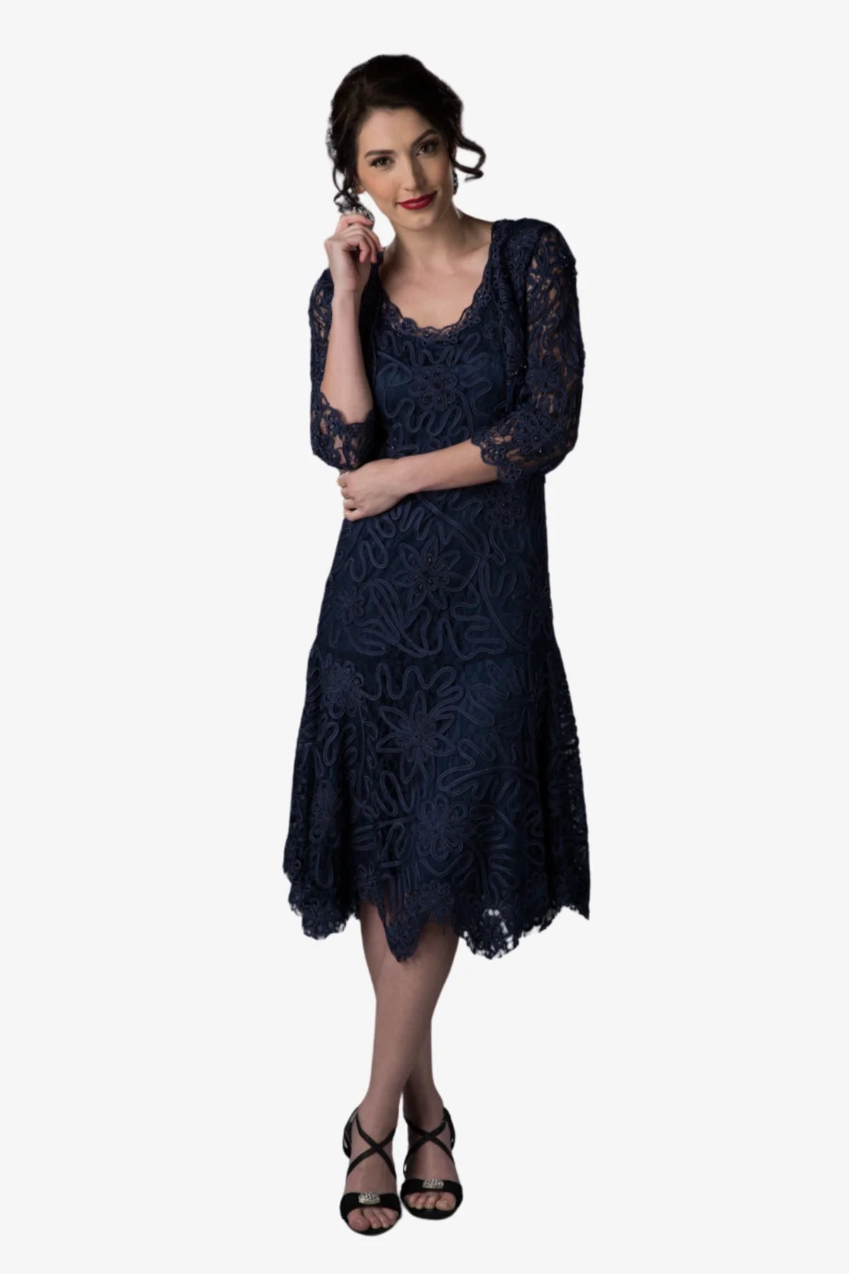 • Flattering Tea-Length Dress: A tea-length cut enhances your natural silhouette while offering ease of movement for dancing.