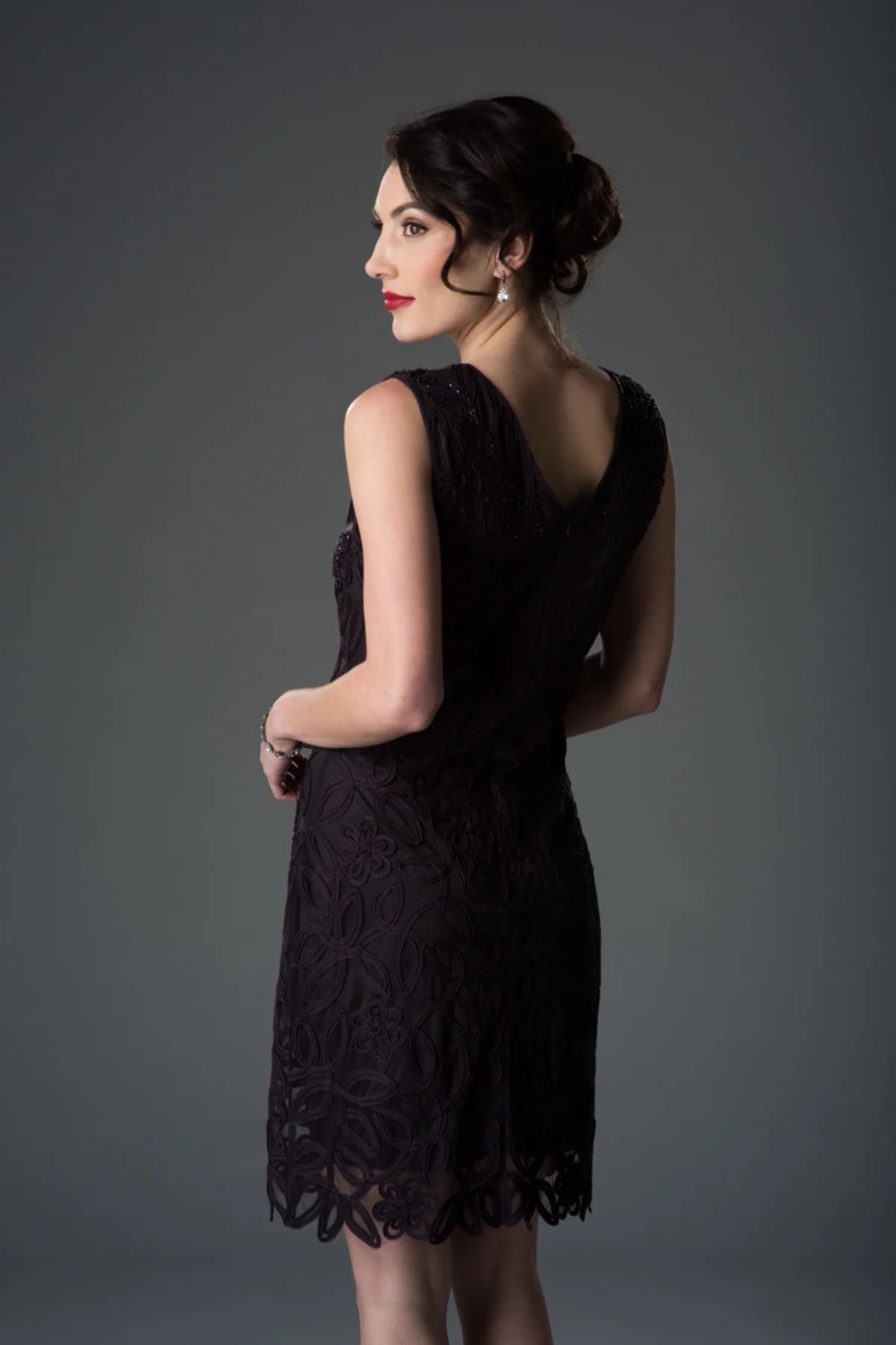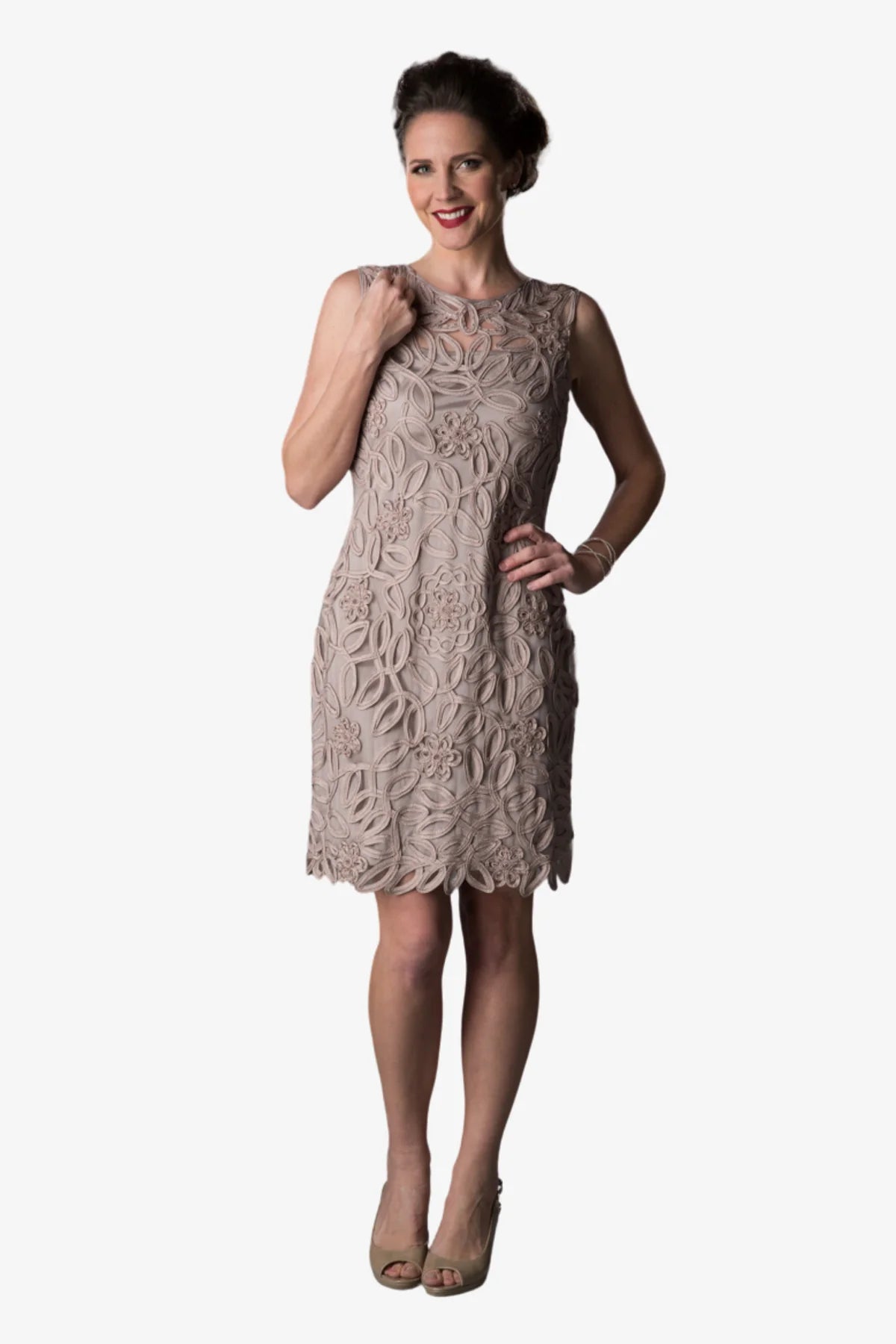 Classically romantic and impeccably crafted, pretty Soutache lace-overlay bodice while a satin ribbon belt defines the fitted waist before the gossamer flow ball skirt contrasts to give this elegant A-line dress a two-piece style with the ease of one.