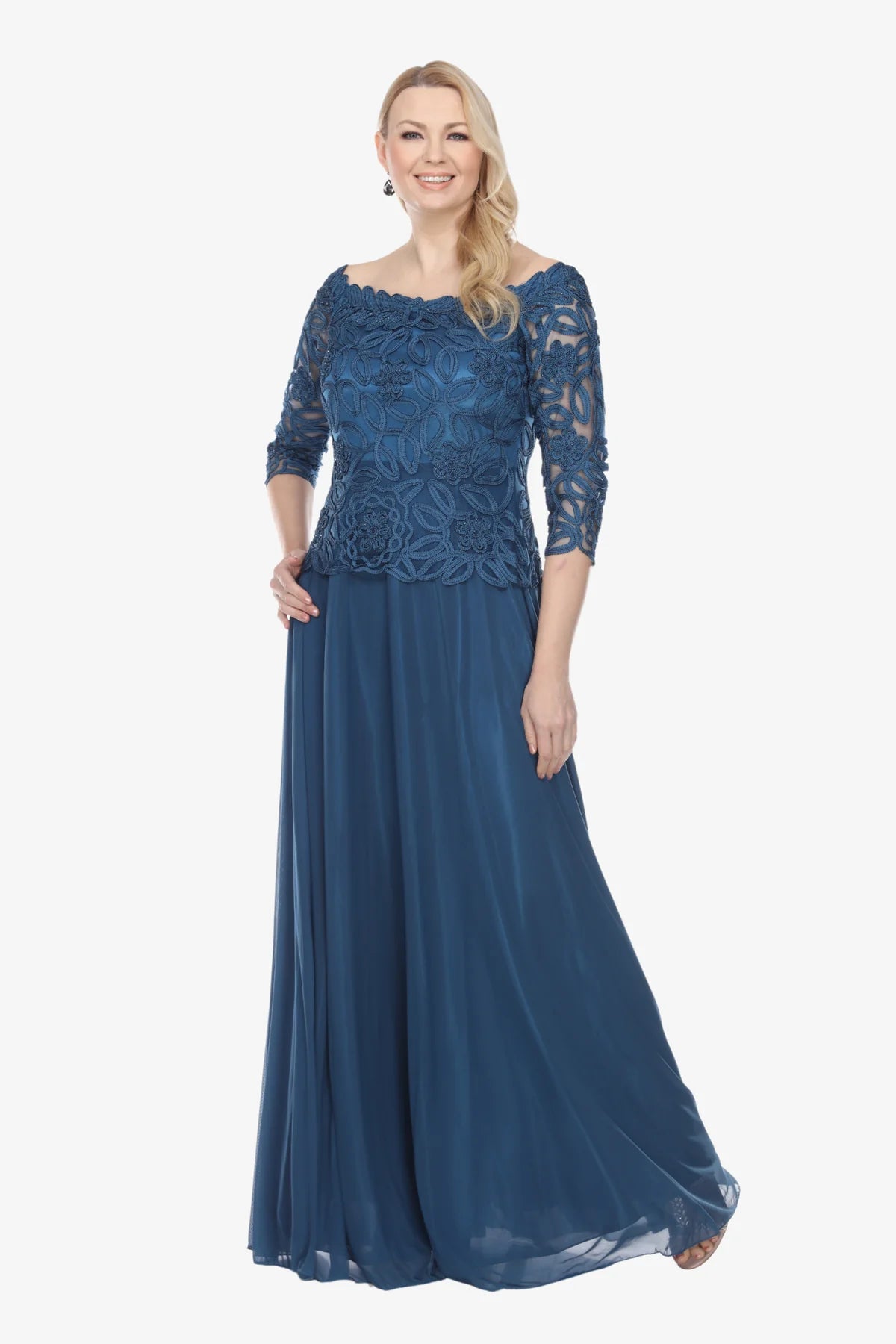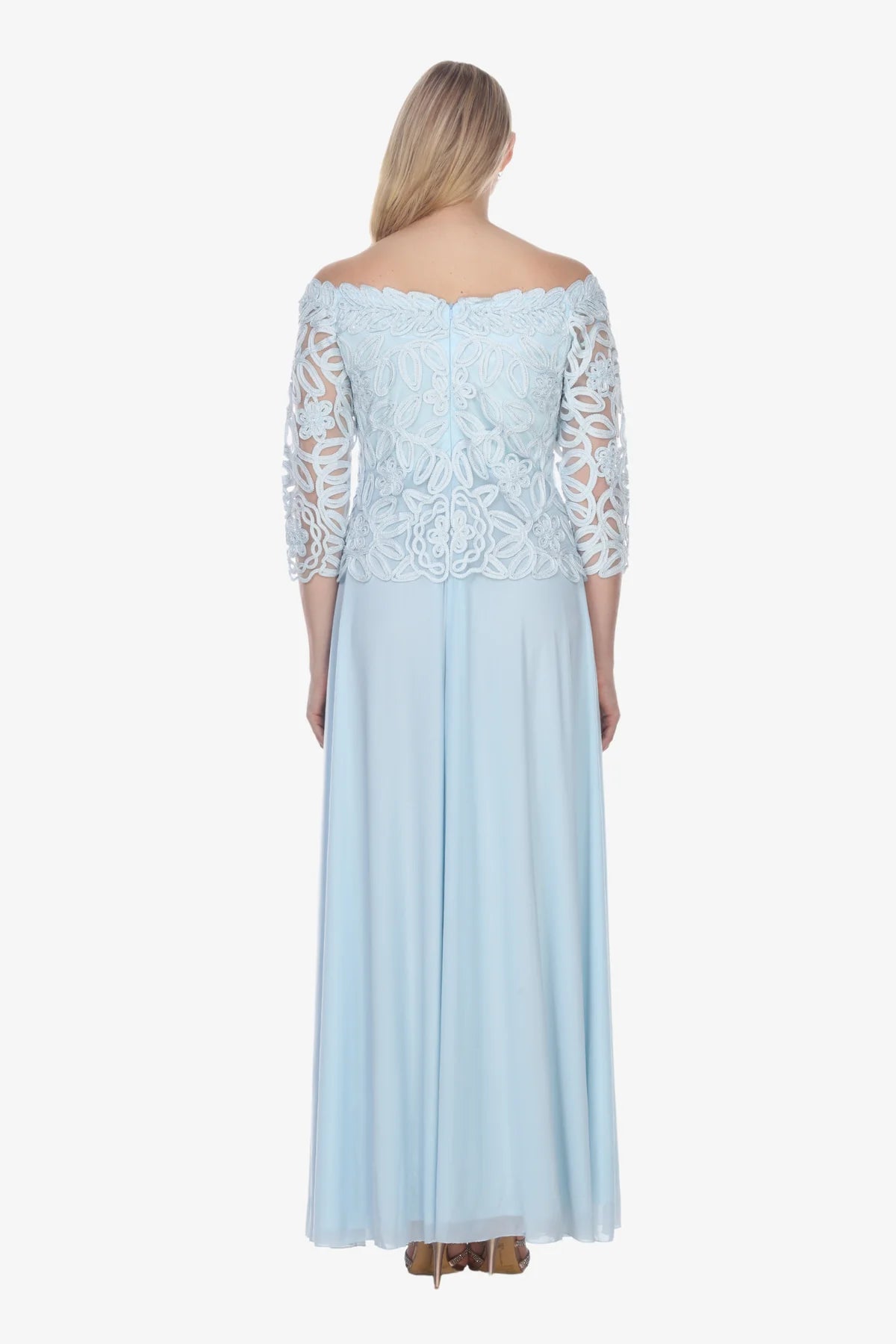 • Soutache Lace Bodice: Layers of delicate Soutache lace enhance the bodice, adding texture and dimension to the gown.